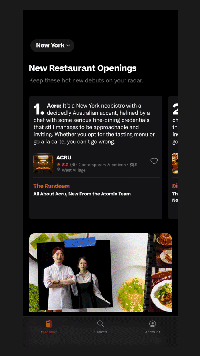 I worked alongside Resy and Amex to create a series of advertisements, promoting and showcase the ease and efficiency of their in-app reservation experience. I mimicked the user experience for making a reservation for various restaurants across the country, ensuring that in-app maps, restaurant recommendations and Resy Hit List articles remained accurate for each ad piece, which were launched in their respective localities, from New York, to Miami and Los Angeles.